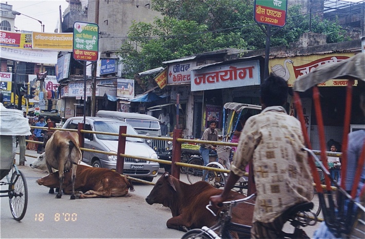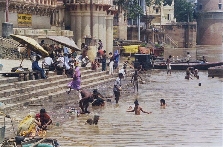 Ajoutons pour terminer ces généralités que le Gange, fleuve sacré, est un un égout à ciel ouvert, un véritable cloaque dans lequel votre serviteur, à la suite d’une fausse manoeuvre, est tombé et s’y est blessé à la jambe... Si, si! Et de notre barque, nous avons vu passer au fil de l’eau des cadavres enveloppés d’un linceul... Si, si!