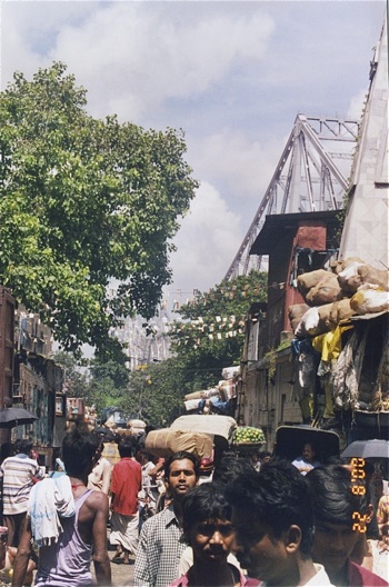 Animation habituelle (pour l’Inde) au pied du pont de Howrah.
