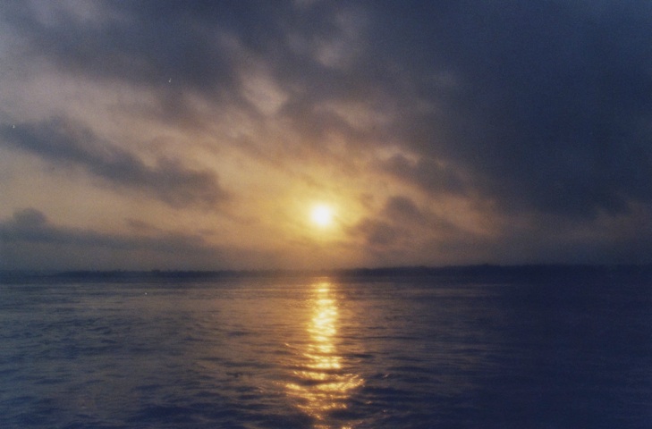 Lever de soleil sur le Gange. Bénarès est située toute entière sur la rive gauche du fleuve, face au soleil levant.