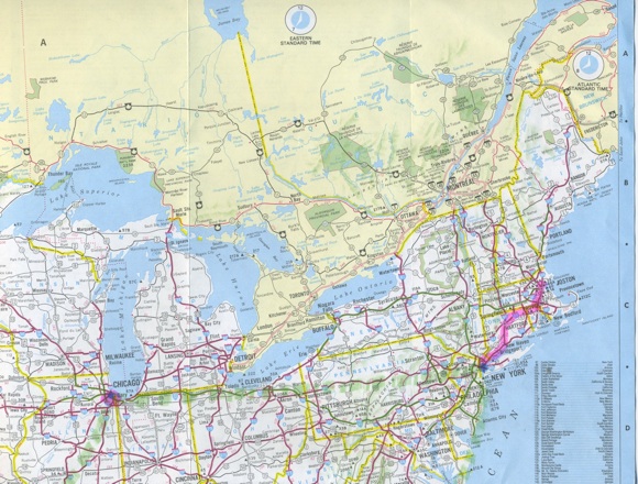 Départ en voiture de la Nouvelle Orléans. Puis: Lafayette, Houston, Galveston, San Antonio, El Paso, Tombstone, Tucson, Globe, Phoenix, Flagstaff, Page, Gallup, Flagstaff, Las Vegas, Bishop, San Francisco & Los Angeles. De là, en avion: Chicago puis New York et enfin, Boston en bus.