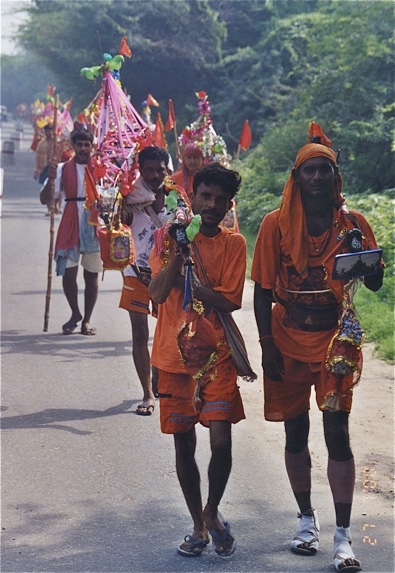 Le 27 juillet. Pélerins (des milliers...) dépassés sur la route de Jaipur.
