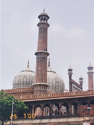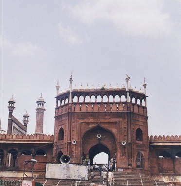 La Grande mosquée de Delhi (construite, comme le Taj Mahal, au milieu du XVIIème s. par l’empereur moghol Shah Jahan). 25 000 fidèles peuvent y prendre place.
