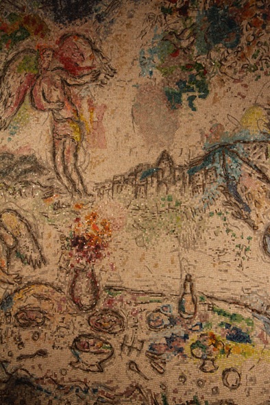 Mosaïque (à droite) réalisée d’après un dessin de Chagall.
