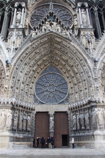 Laon-Reims par la RN 44, déjeuner aux 3 Brasseurs (place Drouet d’Erlon) puis, en chemin pour la cathédrale, un rapide coup d’oeil à l’église St-Jacques (1190-1270, antérieure, donc, à la cathédrale Notre-Dame).