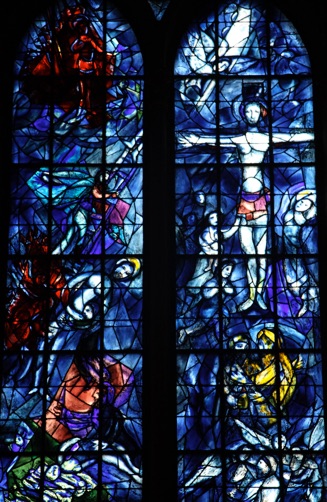 Vitraux de Chagall (choeur)                        Dalle au sol.