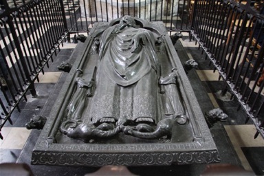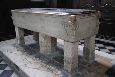 Cuve baptismale (1180)             Gisant en bronze (XIIIème s.)