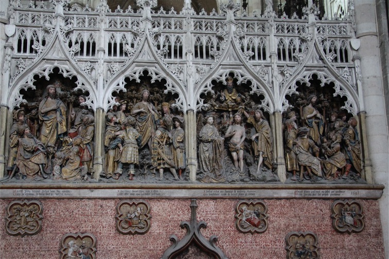 Les 110 stalles (gothique flamboyant, début du XVI ème s.) du choeur.