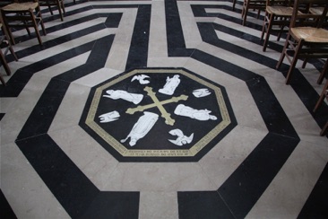 Le labyrinthe (234 m), à parcourir à genoux - en suivant la ligne noire - pour expier vos péchés.