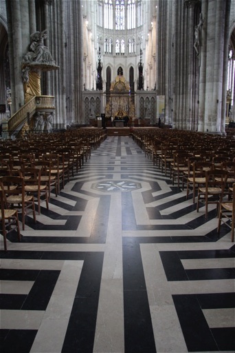 De l’autel, vers le jubé, le choeur et le chevet, puis le portail.