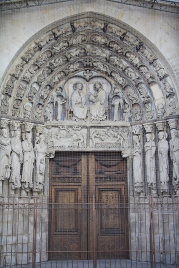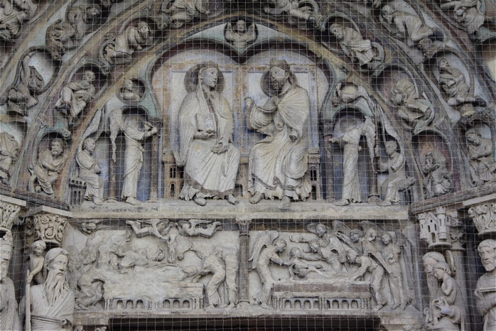Le Grand Portail (XIIème s.) et ses deux bas-reliefs consacrés à l’assomption de la Vierge.