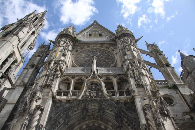 La cathédrale Notre-Dame, La façade du croisillon (XVIème s.) et la flêche (78 m).