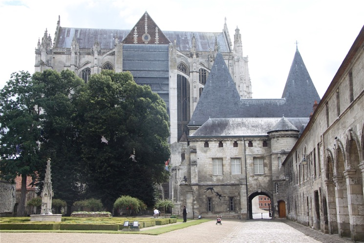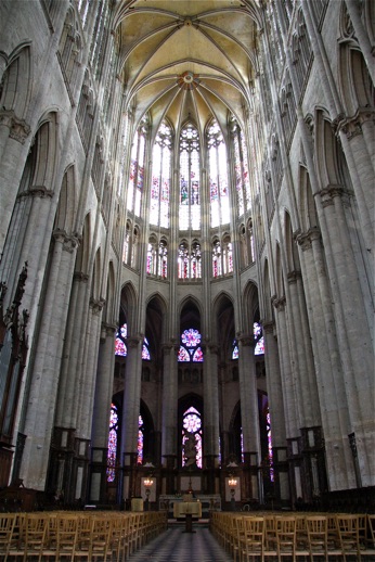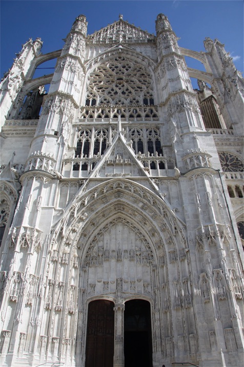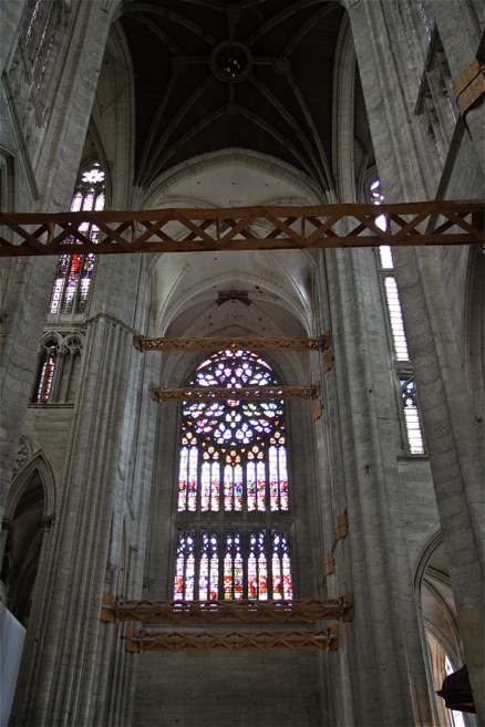 ...étonnante, car totalement inachevée: sa nef ne fut jamais construite, et sa flèche (153 m de haut) s’ecroula en 1569.